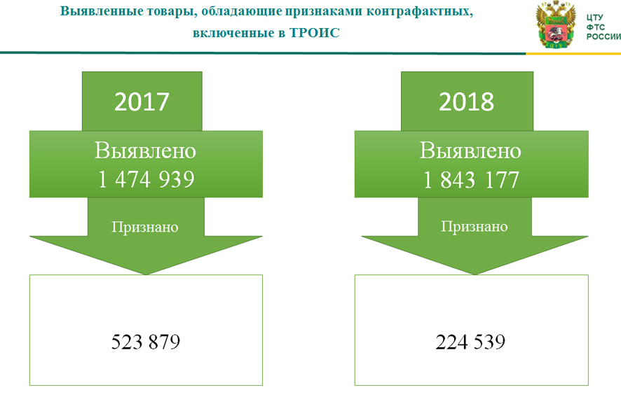 По результатам работы в 2018 году Центральное таможенное управление заняло первую позицию в рейтинге таможенных органов по количеству выявленных товаров признанных контрафактными.