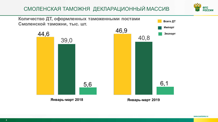 Объем запрещенных к ввозу в Российскую Федерацию составил 20 тыс. тонн, в том числе 0,8 тыс. тонн санкционной продукции. В сопредельные государства возвращено 18 тыс. тонн товаров, что на 41% превышает показатель 2018 года. При этом более чем в 2 раза сократился объем уничтоженных товаров: с 1,8 тыс. тонн в 1 квартале 2018 года до 0,8 тыс. тонн в 1 квартале 2019 года.