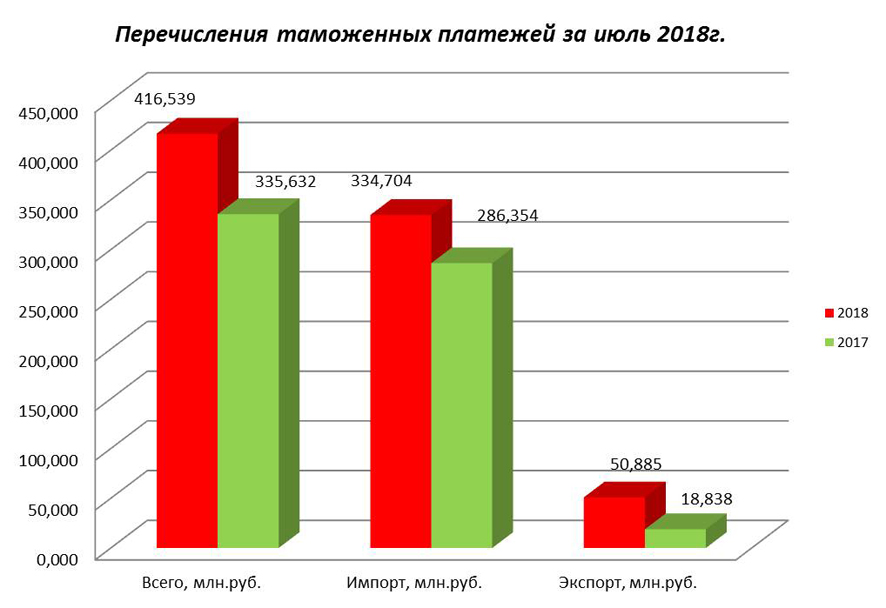 За первое полугодие 2018 года Курской таможней перечислено в федеральный бюджет 5 миллиардов 452 миллионов рублей, оформлено более 18 тысяч деклараций на товары.