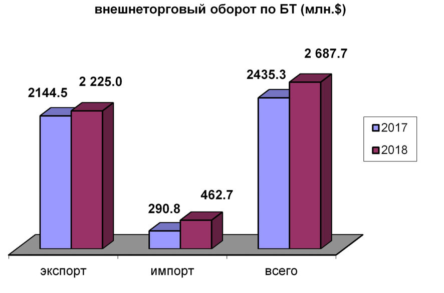 Увеличение товарооборота в текущем году обусловлен увеличением импортной составляющей на 32,1 млн. долларов США (10,2%), при этом экспорт снизился на 8,6 млн. долларов США (0,5%).