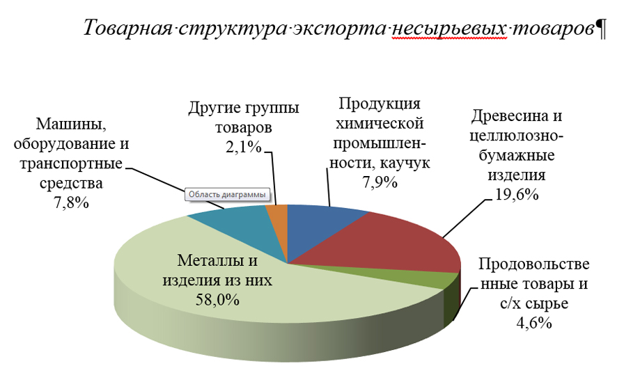 В товарной структуре экспорта по-прежнему превалирует продукция химической промышленности – 75,7%, древесина и целлюлозно-бумажные изделия – 10,3%. В товарной структуре импорта ведущими группами остаются машиностроительная продукция – 59,8%, продукция химической промышленности – 18,3%, металлы и изделия из них – 8,9%.