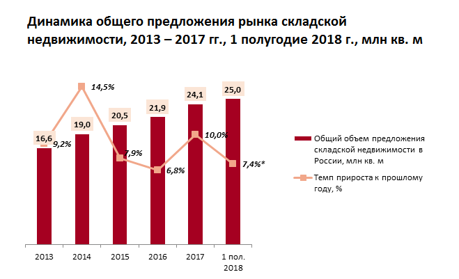 Дорога вверх- Как отмечает Сергей Кузичев, директор департамента складской недвижимости Knight Frank, в России рынок качественных складов является наиболее «молодым» из всех сегментов коммерческой недвижимости. Еще в начале 2000-х рынок складов Московского региона был представлен объектами времен советской постройки, а также складами класса А, построенными конечными пользователями для ведения собственной операционной деятельности. В 2018 г. рынку качественной складской недвижимости исполнилось 14 лет. 2005 год принято считать началом становления рынка складской недвижимости Московского региона, так как именно тогда, с приходом на столичный рынок специализированных складских девелоперов (таких как Raven Russia, MLP, PNK), началось строительство больших объемов спекулятивных складов. Спрос в разы превышал предложение, объекты сдавались в аренду еще на этапе строительства. И если в 2005 г. общий объем качественной складской недвижимости в Московском регионе составлял около 3 млн кв. м, то по предварительным итогам 2018 г. данный показатель достигает 14,2 млн кв. м. а доля вакантных площадей находится на уровне 5%, или около 745 тыс. кв. м.