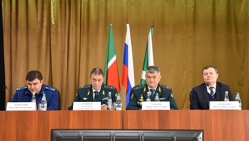 11 января 2023 в Татарстанской таможне подвели итоги деятельности в 2022 году. В совещание приняли участие первый заместитель начальника Приволжского таможенного управления Александр Архипов, главный федеральный инспектор по Республике Татарстан Виктор Демидов, татарский транспортный прокурор Василий Добротин, а также личный состав таможни.